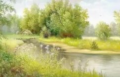 雨停了,来到田野,开眼望去,绿色寒烟翠,哦,春,真的来了。 婆婆纳细枝绿蔓铺满田埂,星星点点的蓝色小花,那么小,沾着湿漉漉的雨水,娇羞羞,清新乖巧的秀模样,轻轻地开遍埂渠,惹人喜爱。 我和二妹踩着田埂细碎的蓝花花,寻找荠菜的影子,一边聊着关于故乡的一些人和事。 二妹刚从老家回来,我想从她的语言里听到关于故乡更多的消息。哪怕是老屋墙角一株石榴树的命运,及村上任何一个乡亲的幸福与不幸,我都想知道。 二妹尖叫着:“好胖的棵荠菜!”她惊喜于一丛五朵云里挖到一株又肥又嫩的荠菜,我却想到叮咛她回家给我拍一张村后青石板小桥的图片。 原来童年的学校成了废墟,青石板小桥无人走,野草没膝,荒了,桥边的池塘填平做了天地,没有了水源。 青石板小桥不在了,那些与青石板小桥有关的人也在天涯,而它的故事是我永远的记忆。 青石板小桥就在我家后面,倚窗可以看见它横斜在沟渠上青灰色身影,安静而执着。 小桥头是一条长满野草的田间小路,一直延伸到我儿时的校园。 那年,小桥旁边的池塘,是垫宅基地挖出来的。 每当挖土盖房时,那些新鲜的泥土里会有雪白的芦苇根。 于是每天上学,放学,我、艳萍、梅花、素贞、艳姐,都会到烂泥里找芦苇根。 把芦苇根上烂泥擦掉,或者找水洗洗,那些丑陋肮脏的芦苇根,就变得雪白和光泽。放在嘴里吮吸,有甜甜的汁液沁入心脾。我们一边啃着美味的芦苇根,一边快乐地踏上青石板小桥,走上野草葱茏的小路,上学去。 天那么蓝,地那么绿,空气那么芬芳,我们那么自由······ 那年,我们的世界就是村子里,村子后青石板小桥那边的田野,小路尽头的学校。世界就这样简单,快乐却一直延续到今天的回忆。 春天的时候,落谷时节,春水潺潺流过青石板小桥。青石板小桥那边的小路上,紫花地丁开了,遍地都是淡淡的紫,仿佛是春天缭绕的紫色梦,纤细,薄凉,却又妩媚。 我们蹲在紫花地丁的紫雾里,指尖轻轻拨开杂草和紫花,那株株尖尖细细,带着红晕的”茅针“从泥土里钻出来,给我们无数个惊喜,以及沉甸甸的满足。 当”茅针“——茅草的花蕾装满我们的花布衫口袋,这才从紫色花丛爬起来,拍拍身上的泥土和草籽,居然还有紫花地丁黏在衣襟,小小的紫花,如一句低低的眉语,好看的影子,生动着,舍不得让她从我衣襟落下。就如我舍不得那一段老去的童年。 我记得有一个夏天,母亲带着我到青石板小桥洗衣服,那里聚集了很多村上的姑娘,她们一边洗衣服一边低眉细语。猫耳朵花从青石板缝隙探出笑脸;雀瓢缠满芦苇开着一串串淡紫色花,熏香了整个池塘;野草野花覆盖了小桥那边的路面;姑娘们的笑语甜甜,轻轻飘过一朵朵花蕊,随风飘到更远,落到梦的地方。 我看着那些姑娘们,都有着干净的皮肤,素洁的容颜,素素的样子,带着花气,那么美!那么纯! 有个姑娘叫美红,她做的农活最多。她有三个哥哥,一个姐姐。她的姐姐看电影时候与一个生意人私奔了。美红勤劳贤惠,干完大哥家活再干二哥家还有三哥家,深得嫂子们的喜爱。她的皮肤被太阳晒得像小麦的颜色,却洁净丰满。鼻翼上有几颗可爱的雀斑,丝毫不影响她的美,反而增了几分俏丽。 我看着她笑语时,几粒雀斑在鼻翼很好看地舒卷,就对她说:”姑姑,你脸上的小雀斑好看!“ 她对着我笑得像猫耳朵花那般灿烂,母亲却满脸不高兴,狠狠地瞪着我。 回到到家里,母亲教诲我以后讲话要学着讲,有些事实是不能说真话的,直面说人家脸上的雀斑很伤人。 其实美红姑姑性情温柔豁达,并不在意我的话。 那次集体铺路,母亲要我和她一起去铺路体验生活。 路边的辣柳条没心没肺泼洒一季葱绿,开出穗穗紫花,散发着微微苦味的香甜。 我正坐在这绿叶繁花的阴凉里小憩,那个叫美红的姑姑,笑吟吟地掀开遮挡我的树枝,她的脸颊有玫瑰的绯红:“小燕,帮我看看这上面写什么?” 那是一枚小小的明信片,上面有一对恋人在夕阳下行走,歪歪斜斜写几个蓝色的钢笔字:“美红,我等你!” 当我把那几个字告诉她,她用一只手不好意思地遮住唇角的羞涩,拿过那张写满浪漫和思念的图片,钻进另一处辣柳条花丛。 老家有这样的习俗,每到一个节日,男方要送节礼,然后是接女孩到男方家。 美红的父母亲非常守旧,男方每次来接美红,从来没有允许美红去。 有一年六月六,正是接女友的最佳节气。我倚在我的窗口,无意识向村后望,偶尔看到美红和一个小伙子。小伙子在前面低头走着,美红跟在后面,像一朵开得很委屈的猫耳朵花,羞涩,欲言又止。 到了青石板小桥,小伙子走到小桥中间,扭头看停在小桥这边的美红。 美红立在拂桥而绿的柳枝下,玫红色裙角飘在野花丛,像落了满地的玫瑰。各种草木清香一遍遍弥漫爱情的滋味,雀瓢的浓郁,蒲公英的涩苦,猫耳朵的芬芳,苜蓿的青泽。站在风中的一对恋人,站成两朵干净的花,对望,透着掌心一样温暖的芳香。 怎么可以有这样隐忍唯美的爱情?是小说里的情节,是诗歌里的浪漫,在青石板小桥婉约喃语。 青石板小桥这样千回百转的别离,坚持了七年。美红和那青年从订婚到结婚坚持了长达七年的等待。美红的婚姻代表着她们那一代人对爱情的坚贞不渝。 美红结婚了,我做她的伴娘,满村人都去看热闹,因为美红是这个村子里嫁妆最丰厚的新娘,村上的姑娘们都很羡慕。羡慕美红的还有她姐姐,大喜的日子,躺在东屋的床上哭哭啼啼,后悔当初和男人私奔,