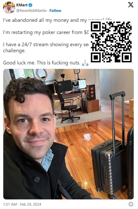 最近GGPoker 职业选手 Kevin Martin 也开启了这个挑战,并且将它发挥到了极致!