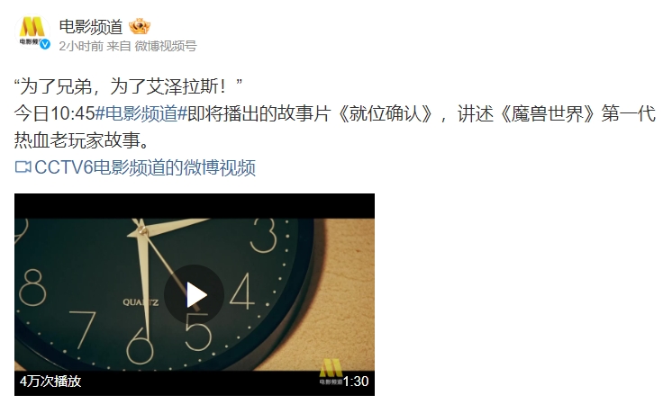 千亿体育4月5日讯 今日,电影频道官方发布预告表示将在10:45播出的故事片《就位确认》,讲述《魔兽世界》第一代热血老玩家故事。