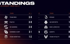 FNC、SK、BDS三支队伍在首周取得全胜,KC则依靠对阵MDK比赛中落后1w经济的翻盘在首周取得2胜1负的战绩位列第四。