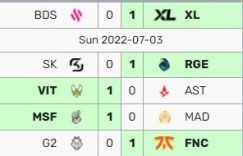 直播吧7月3日讯 今日LEC夏季赛五场比赛已经全部结束,FNC上野发力碾压G2,VIT零换四翻盘AST,XL轻取垫底的BDS稳坐榜首。